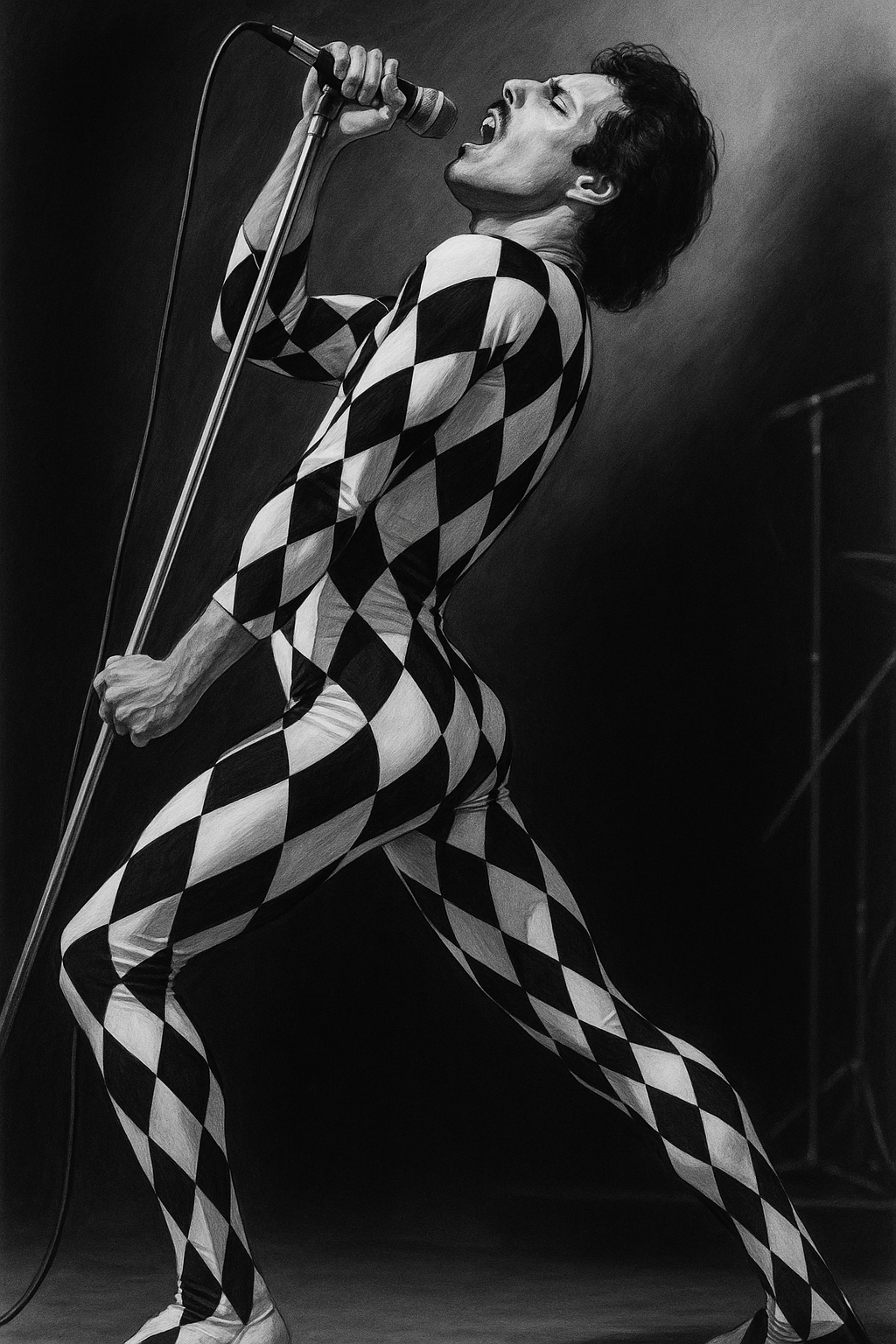 Bei einem frühen Auftritt in den 70er-Jahren löste sich der obere Teil des Mikrofonständers. Mercury, statt zu improvisieren, wie man es erwarten würde, spielte weiter – nur mit dem halben Ständer. Aus der Panne wurde eine Pose, aus der Pose ein Markenzeichen. Der halbierte Mikrofonständer wurde so sehr Teil seiner Präsenz, dass man ihn später kaum noch ohne dieses Requisit denken konnte.