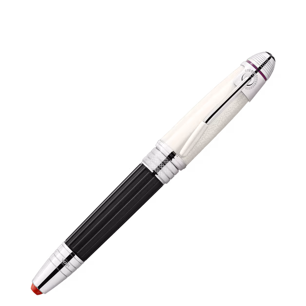 Wer den Füllfederhalter in die Hand nimmt, versteht, dass die Edition nicht nur visuell erzählt, sondern körperlich: Der Füller liegt überraschend leicht auf der Hand, fast wie ein Gitarrenhals, der trotz seiner Mechanik nie schwer wird. Die Oberfläche fühlt sich glatt an, aber nicht steril – das Harz hat eine Wärme, die an alte Vinylhüllen erinnert, wenn man sie aus dem Schrank zieht.