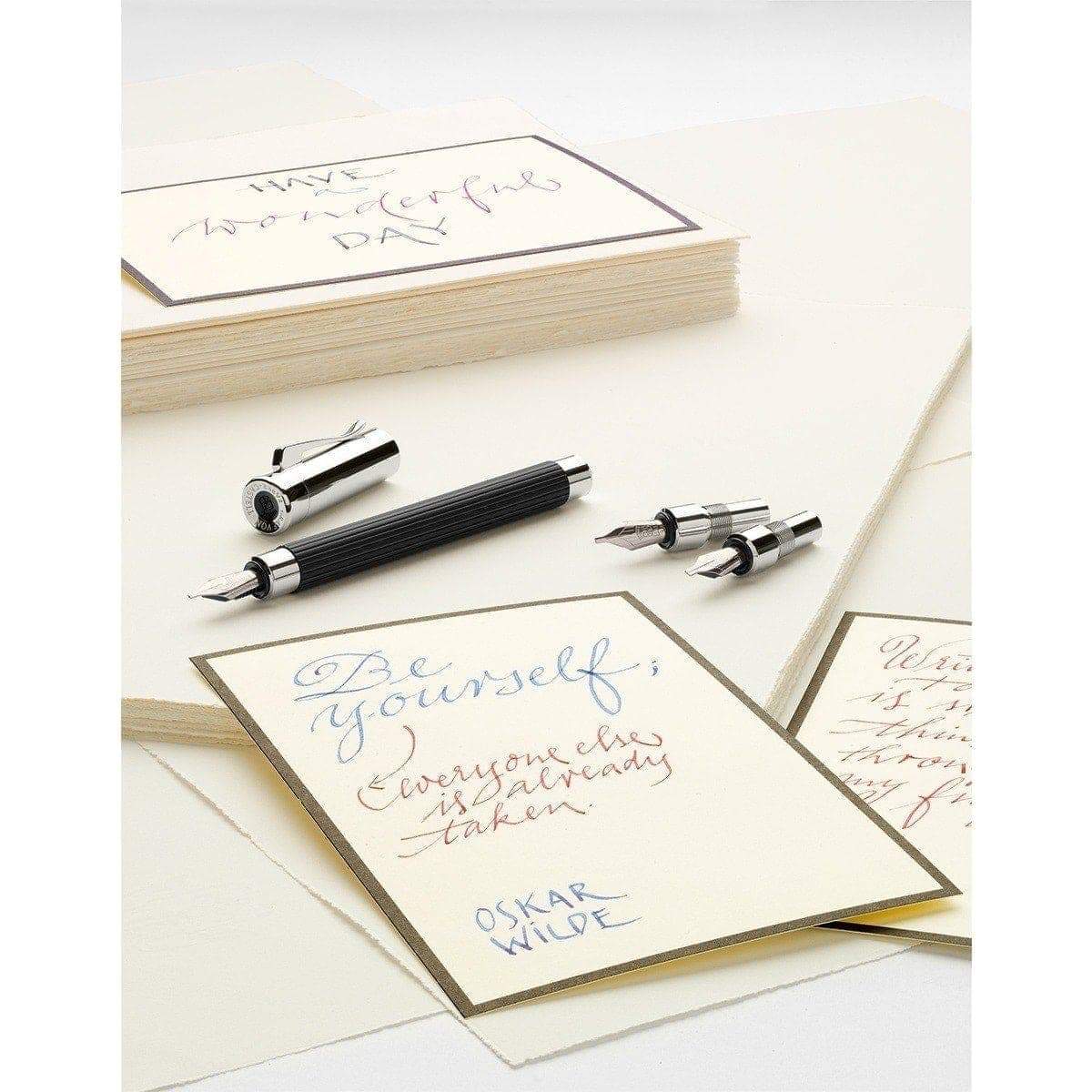 Graf von Faber-Castell bietet mit dem Tamitio Calligraphy Set ein durchdachtes Instrument für alle, die das Schönschreiben nicht nur erlernen, sondern kultivieren möchten. Drei austauschbare Federn (1.1, 1.4, 1.8 mm), ein ausgewogener Metallschaft, klare Linienführung – das Set verbindet deutsches Handwerk mit ästhetischer Zurückhaltung. Es ist funktional, aber nicht nüchtern.